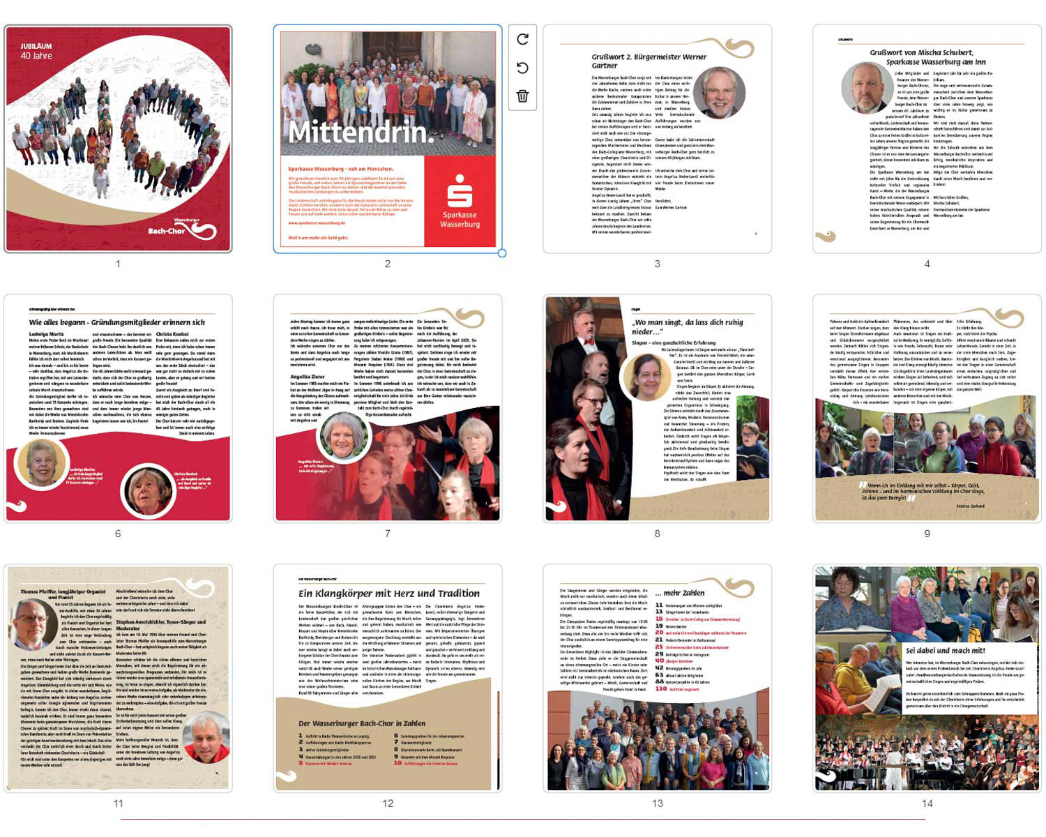 Der Wasserburger Bach-Chor ist ein Chor mit begeisterten Laien-Sängerinnen und -Sänger, die auf hohem musikalischem Niveau singen, und somit ihre Freude zum Ausdruck bringen und Menschen mit ihren Konzerten berühren wollen. Der Wasserburger Bach-Chor hatte 2025 40-Jahre Jubiläum. Um auf die vergangenen Jahre zurückblicken zu können, wünschte sich der Chor eine Jubiläumsschrift.